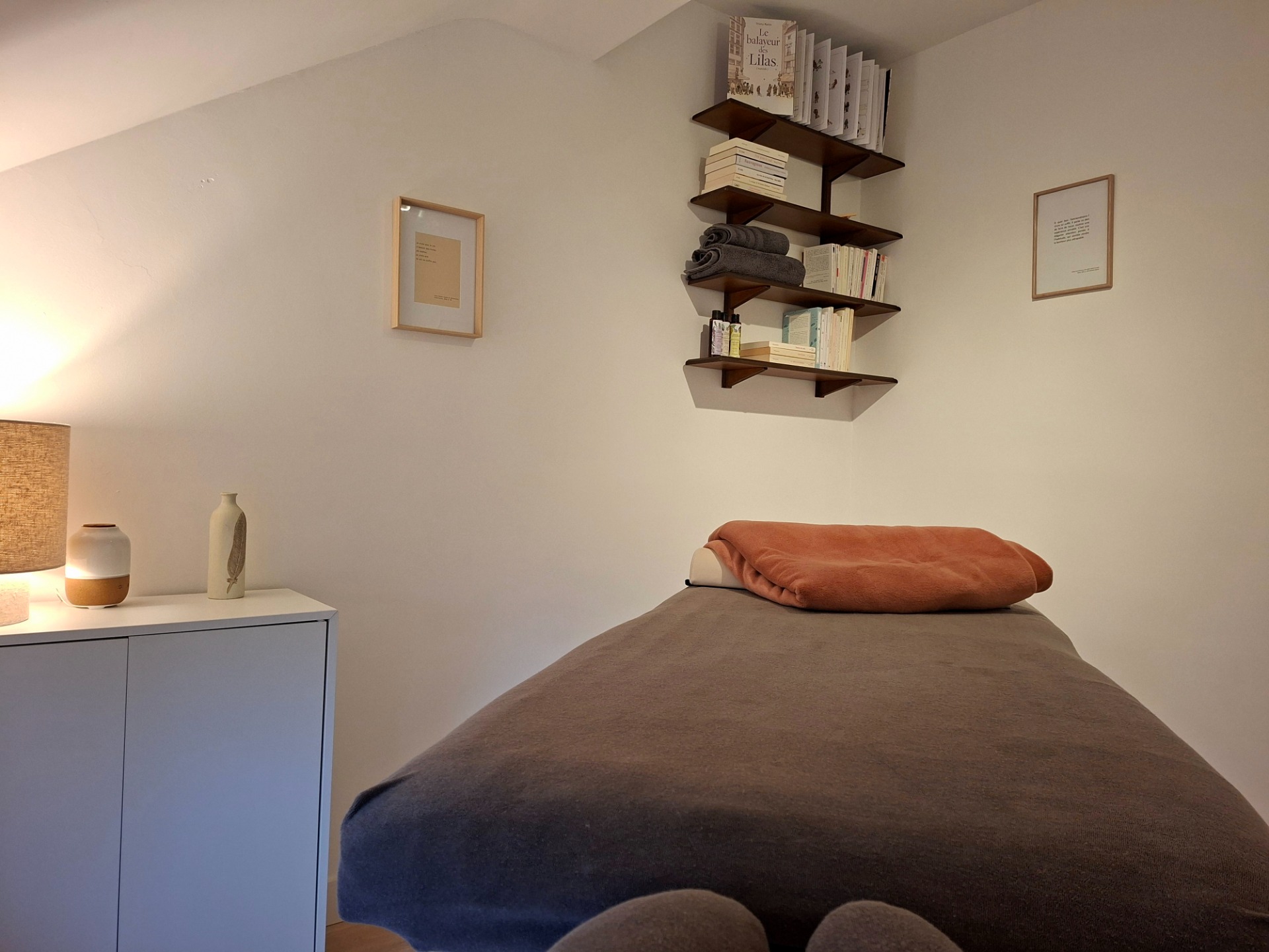 Au fil du temps, j'ai voulu ajouter une dimension bien-être : je me suis formée au massage avec, dès le début, le projet d'y associer la bibliothérapie (utiliser les livres comme de véritables ressources au service du mieux-être). Comment l'idée m'est venue ? Je ne sais pas. Elle s'est inscrite en moi comme une évidence.
